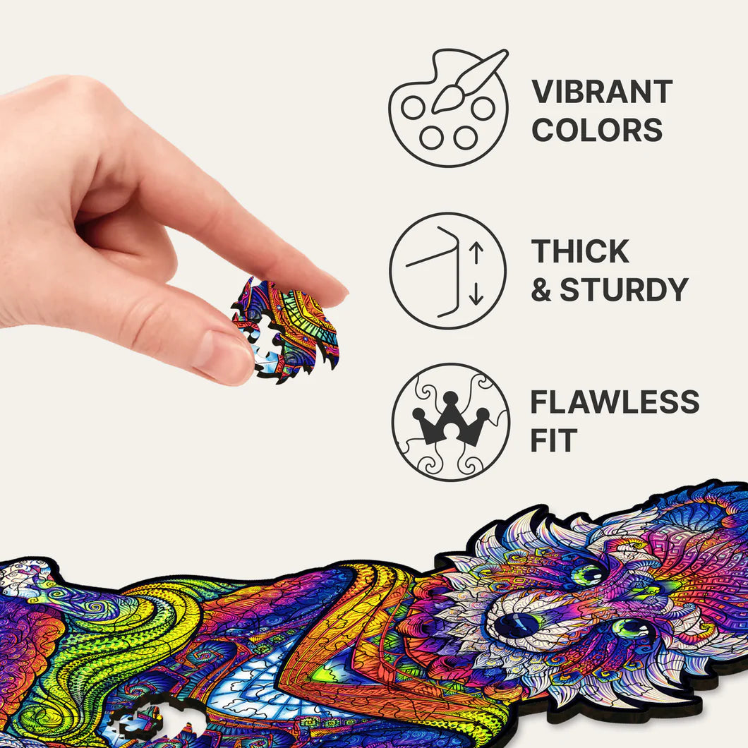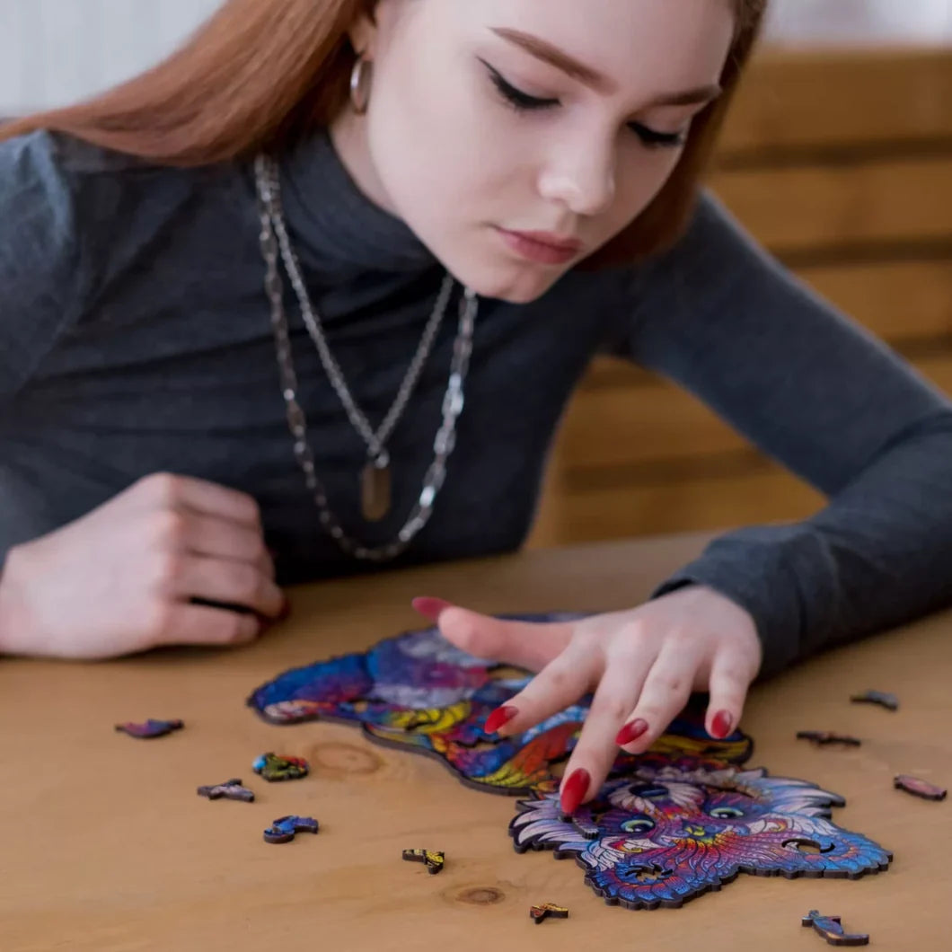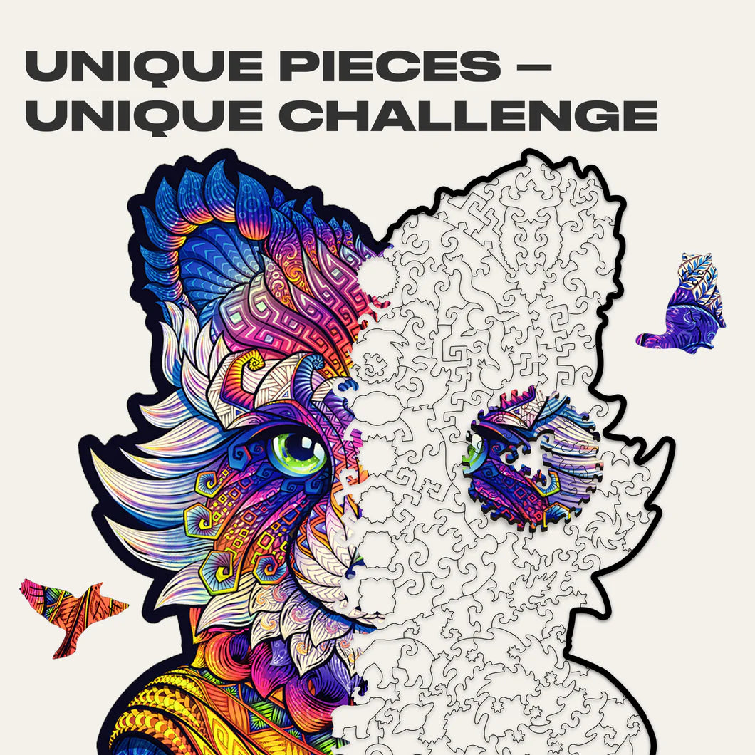Each puzzle in the Animals series comes in four or three sizes. The bigger the size — the harder it is to build the puzzle and the more interesting the story inside it gets. The smallest ones are like trailers to awesome movies, while the Royal Size puzzles will take you on a journey with their own narratives and plot twists. The cuts of each size of each puzzle are unique and different. They are made by creative designers to take you deeper into the story and bring you as many amazing discoveries as possible.