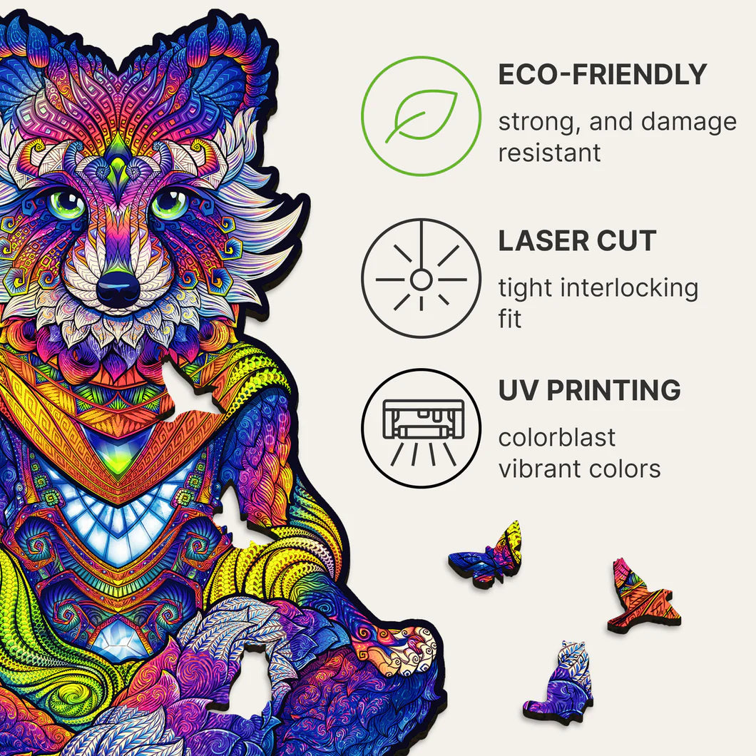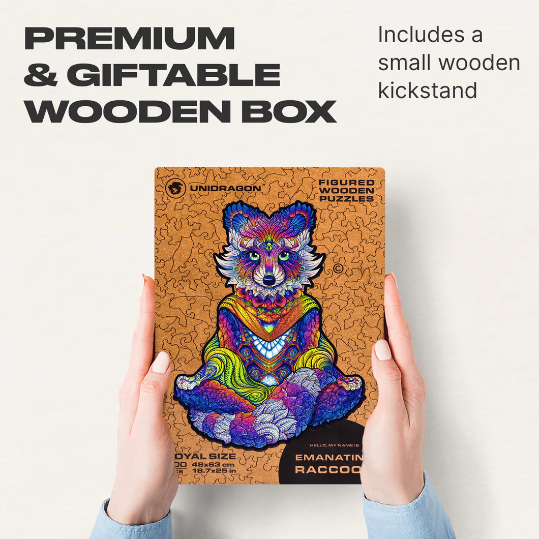 If among animals, there are monks who can spend long years in meditation, then these are raccoons. You can argue but let us say that it is the simplicity and spontaneity that make raccoons such cuties. So, while butterflies are flying around, the Enlightened Raccoon meditates calmly, reflects on the structure of the world, and tries to guess how long it will take you to complete this puzzle in Royal Size. The main thing is not to forget that building a puzzle is basically meditation. Therefore, repeat after us: ""Om-m-m-m, this piece is from here,"" ""Om-m-m-m, so, where is that a funny piece I saw earlier?"" and ""Om-m-m-m, wow, a butterfly?!"".