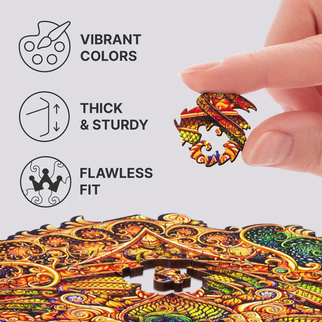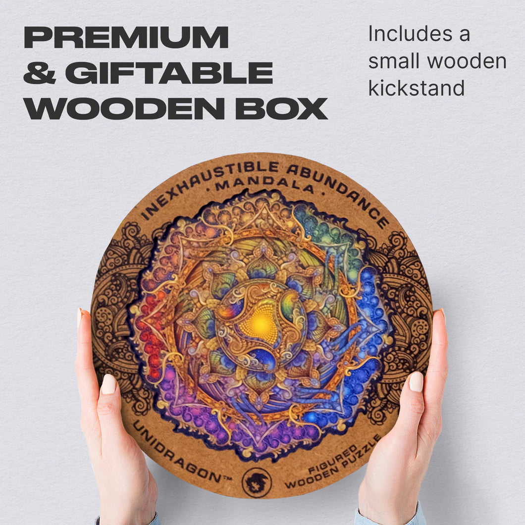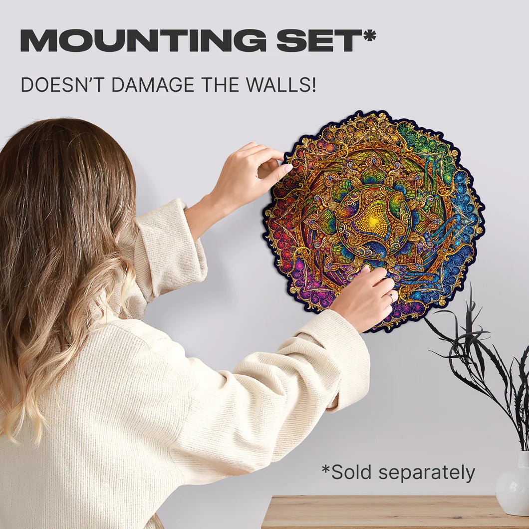The Mandala series puzzles combine meditation and color therapy, allowing you to dive into the abstract space of thoughts and meet your real self along the way. Take your time, breath, and build the Mandala.