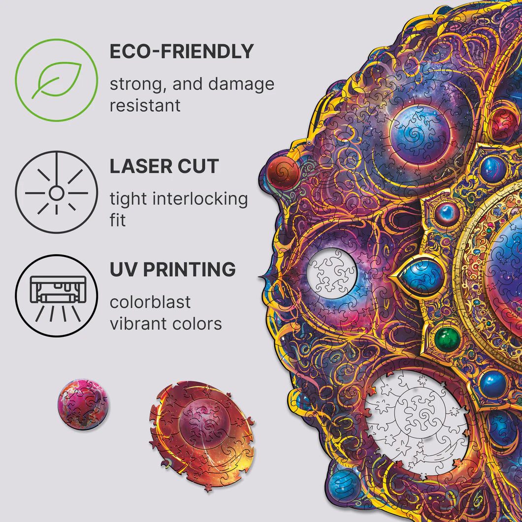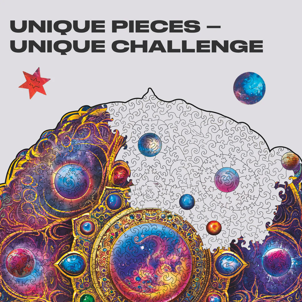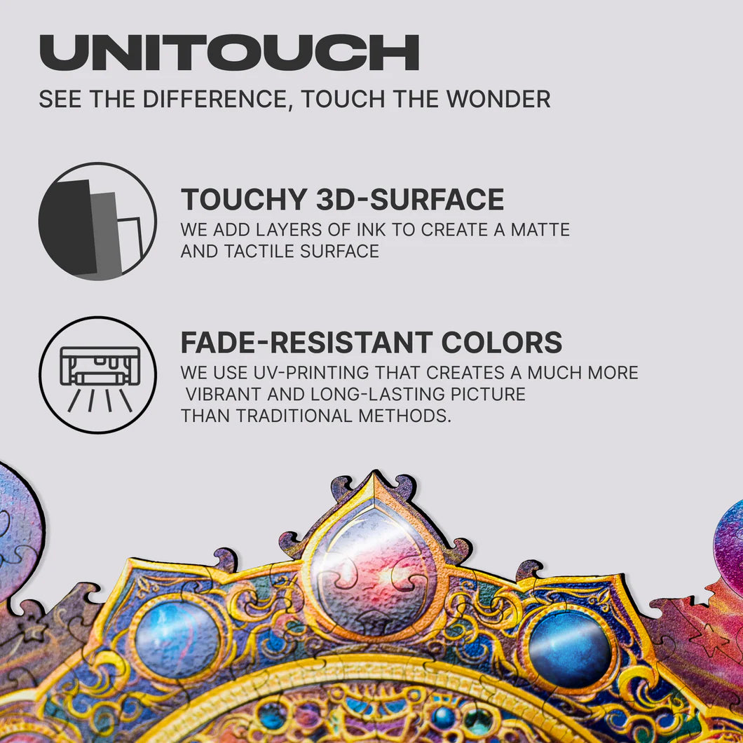 Touch the pieces: they’re textured and shimmer like tiny galaxies thanks to Unidragon’s signature Unitouch printing technology. Putting this puzzle together feels as thrilling as journeying through unknown worlds.