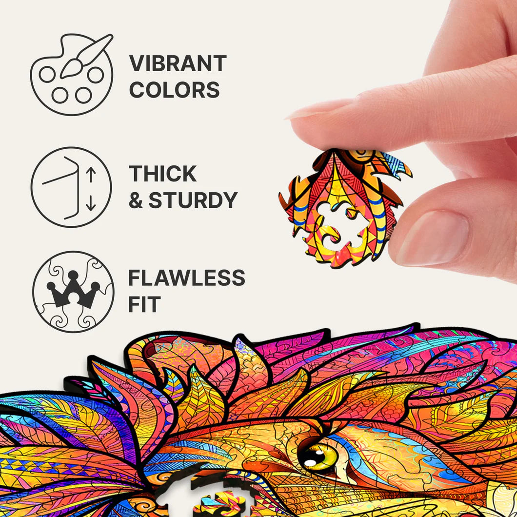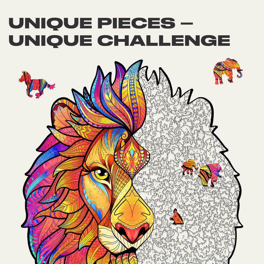 The Mysterious Lion is the King. That’s a fact. He is the center of the Circle of Life, uniting all other animals into a never-ending cycle. He is protecting them, ruling them, and deciding their fate. In his thoughts, you’ll find antelopes and rhinos, hyenas and flamingos, meerkats, and crocodiles — this puzzle is breathing with the spirit of savannah. And as the sun rolls down to the horizon and the land begins to chill before the night hunt begins, you’ll find yourself searching for the next piece of the puzzle to complete the story of the Mysterious Lion, who’s looking at you with his emerald eyes in the dimming light of the day.
