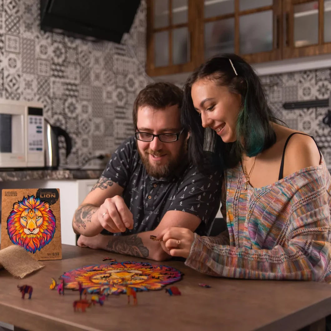 Each puzzle in the Animals series comes in four or three sizes. The bigger the size — the harder it is to build the puzzle and the more interesting the story inside it gets. The smallest ones are like trailers to awesome movies, while the Royal Size puzzles will take you on a journey with their own narratives and plot twists. The cuts of each size of each puzzle are unique and different. They are made by creative designers to take you deeper into the story and bring you as many amazing discoveries as possible.