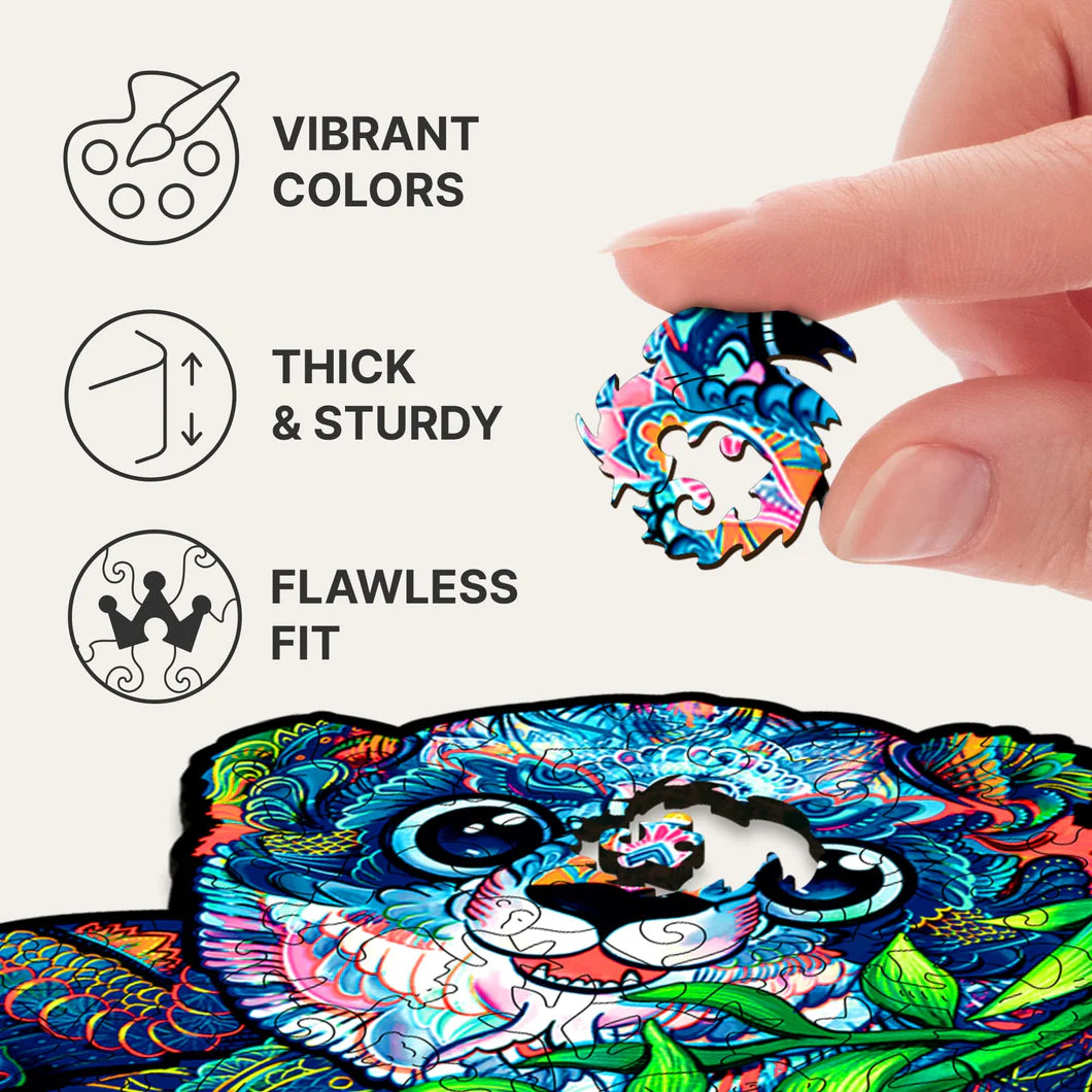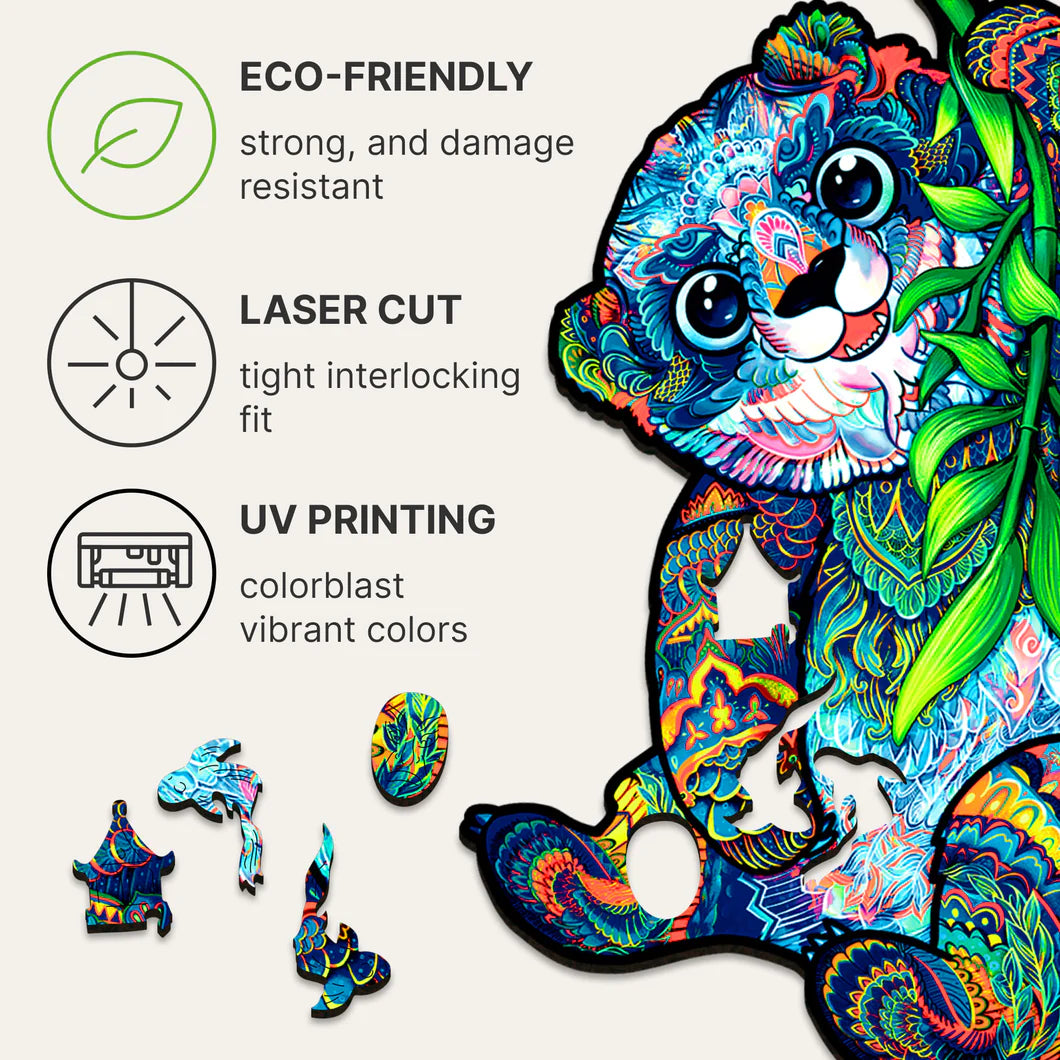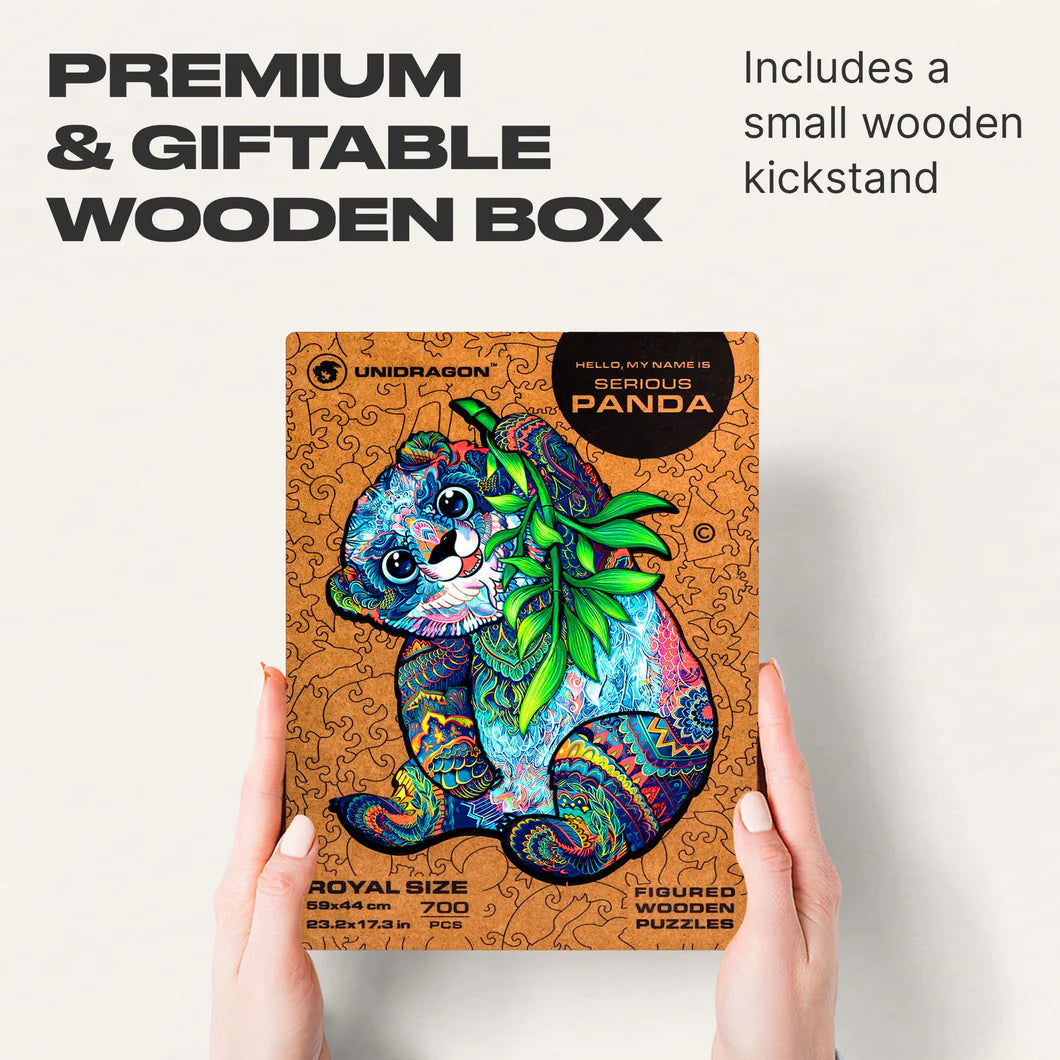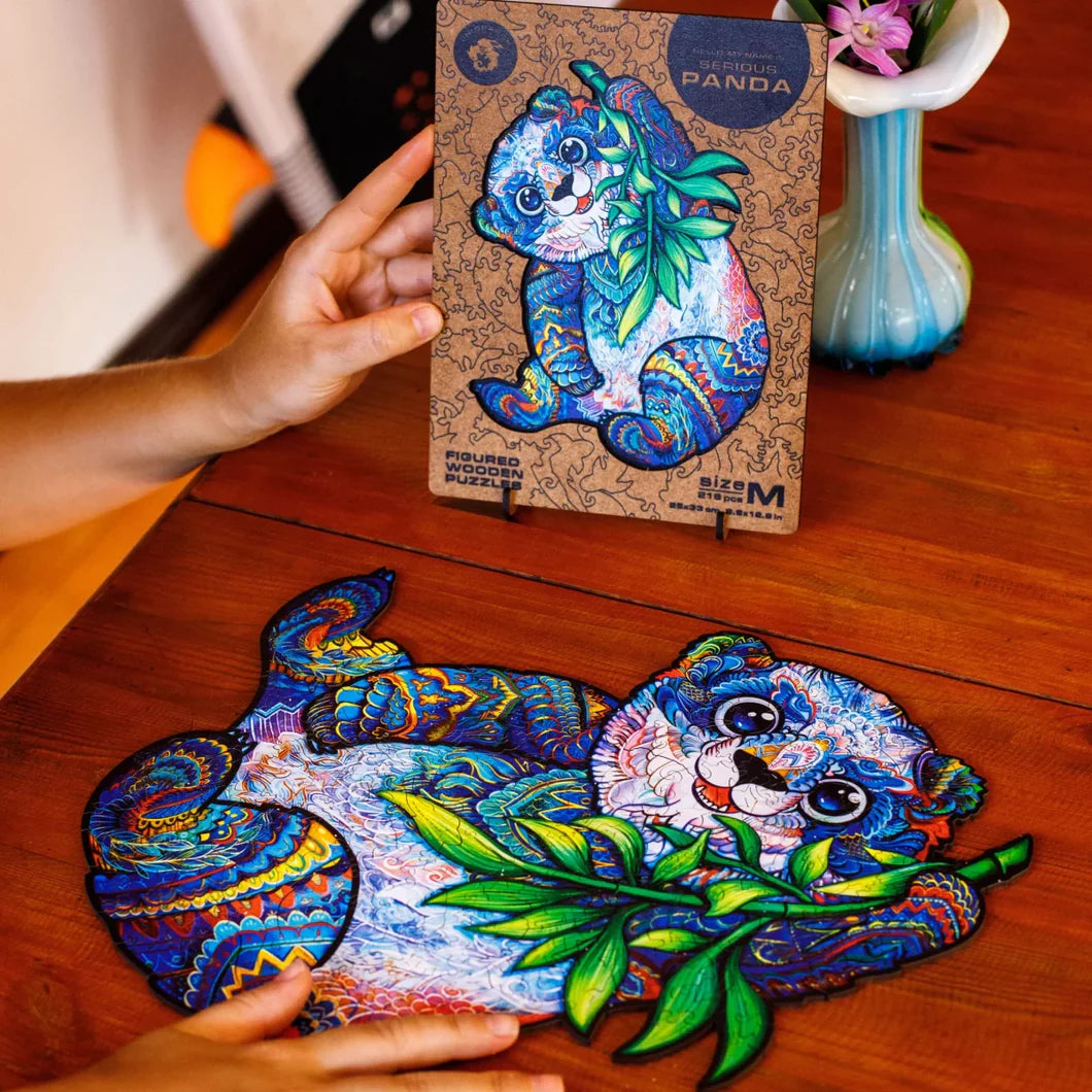 Once there was a time when pandas were an endangered species. But the people made an effort to save these chubby fellas and help them stay with us on our green planet. So, The Serious Panda puzzle is a tribute to the story of these beautiful and cute animals. It tells a story about a big panda family enjoying lunch among flowers, birds, and animals, as well as about the nature of the East. You’ll meet kois, monkeys, exotic birds, and animals of the Chinese forests, and they will take you through the flowers and lotos blossoms to a small meadow to meet the Serious Panda and her family.