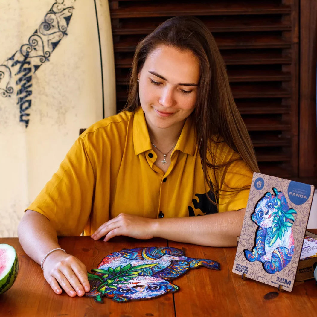 Each puzzle in the Animals series comes in four sizes. The bigger the size — the harder it is to build the puzzle and the more interesting the story inside it gets. The smallest ones are like trailers to awesome movies, while the Royal Size puzzles will take you on a journey with their own narratives and plot twists. The cuts of each size of each puzzle are unique and different. They are made by creative designers to take you deeper into the story and bring you as many amazing discoveries as possible.