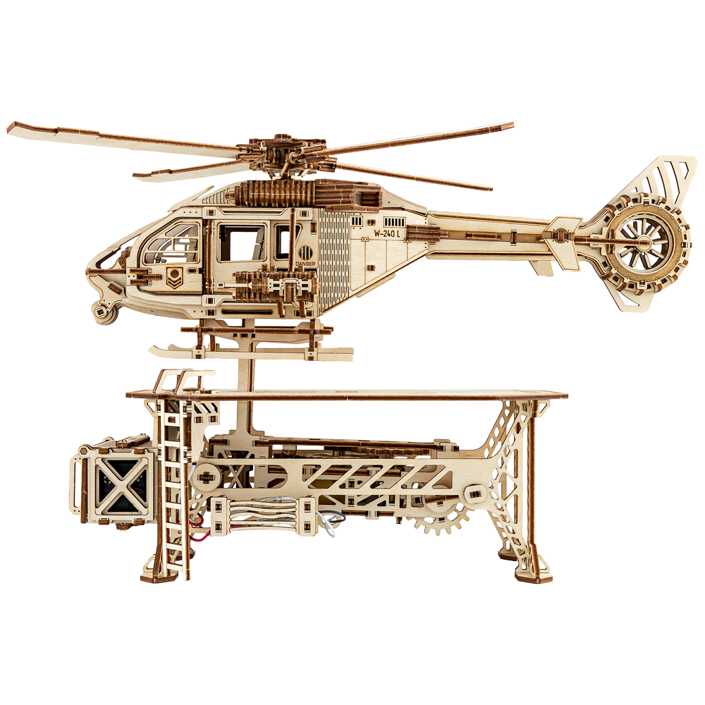 Who will enjoy the Thunder Chopper the most? If you are excited about planes, helicopters and sky travels as well as clever mechanisms and real DIY challenges, this 3D model will impress you and provide plenty of fun. Another important point is that the Chopper is safe for both your health and the environment. Like all our models, it is made of sustainable plywood and can be fully assembled without the need for glue or other supplies.